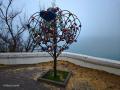 Сама ротонда тоже едва угадывается — виден только смутный силуэт. Деревья рядом теряются в густой дымке.