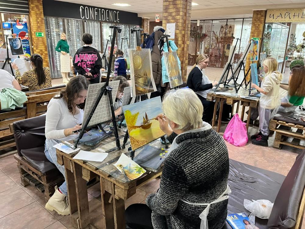 В этот день участницы смогли на время забыть о бытовых заботах и полностью погрузиться в мир искусства. Под руководством Александра Дорофеева взрослые и дети делали свои первые шаги в живописи: на холстах появлялись морские пейзажи, золотистые пляжи и сказочные сюжеты. Каждая работа получилась по-своему уникальной и стала отражением настроения и внутреннего мира автора.